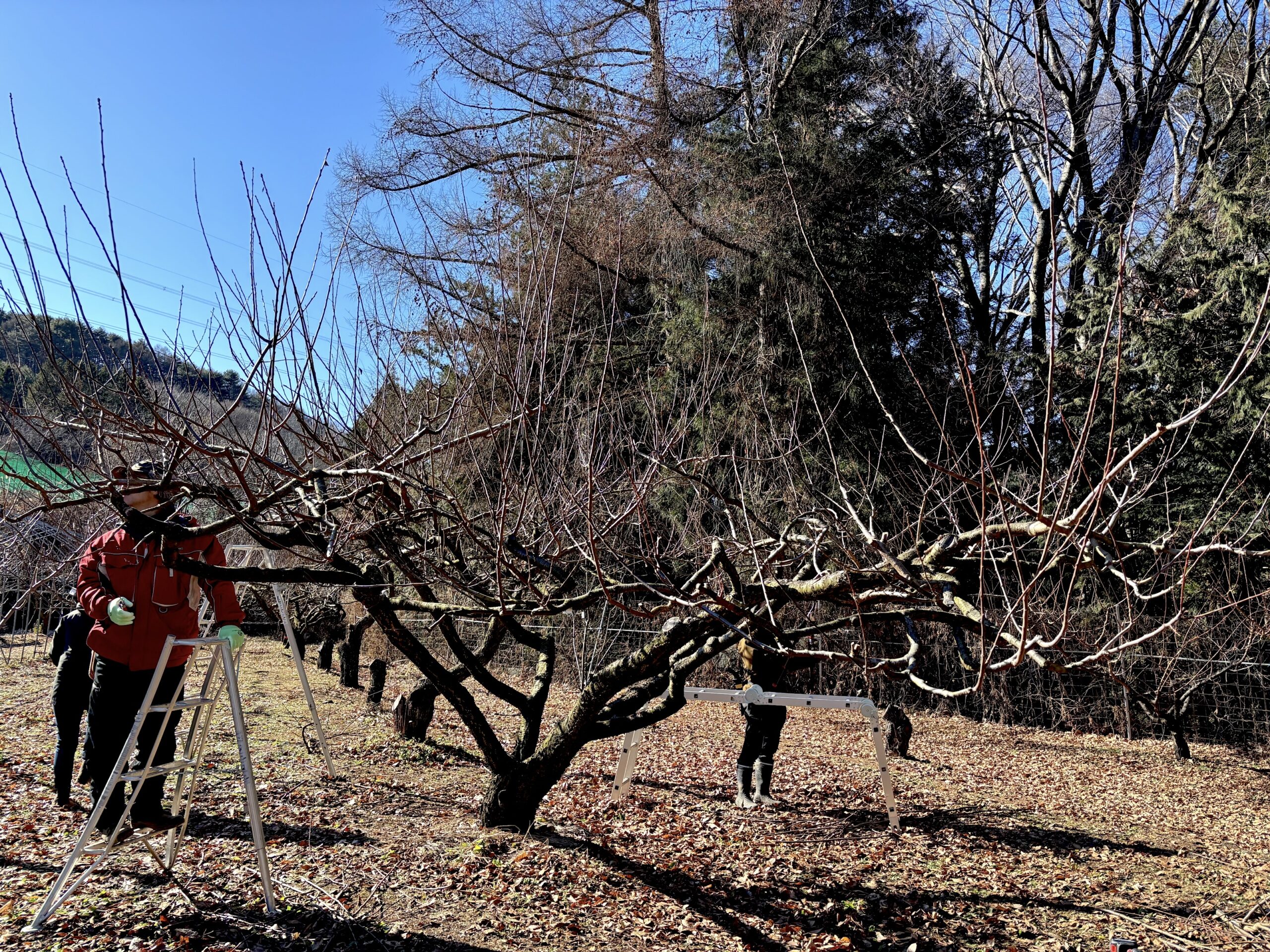 剪定作業は3月まで続きます。夏には美味しいプルーンの収穫を祝えることを願って、怪我のないよう安全に作業を進めていきたいと思います。